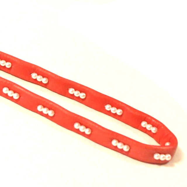 レザーの柔らかさはもちろん、パールビーズがほどこされた繊細な作りのリードです。